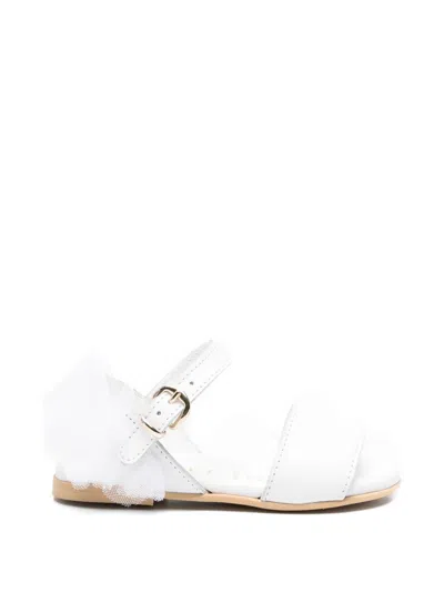 Kids' Leather Sandal With Tulle Details In White