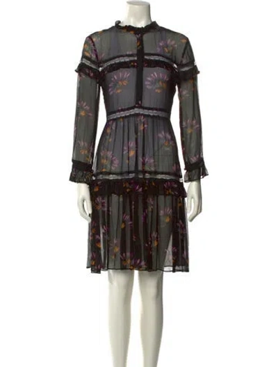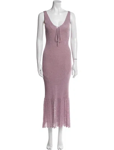 Pre-owned Tie Neck Midi Length Dress In Purple