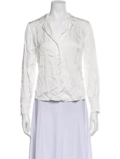 Pre-owned V-neck Long Sleeve Button-up Top In White