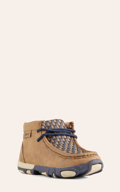 Kids Oliver Brown With Navy Basketweave Moc Toe Chukka Casual Shoe