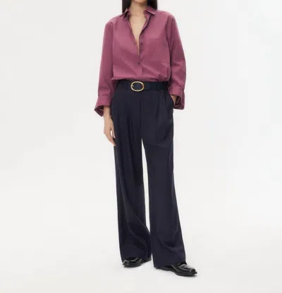 Demie Cotton-linen Mid-rise Wide-leg Pants In Midnight