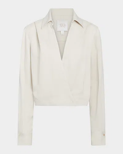 All Wrapped Up Cropped Cotton-blend Poplin Wrap Shirt In Blue