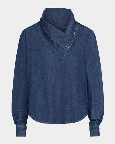 Fifis Pussy-bow Paneled Denim Blouse In Blue