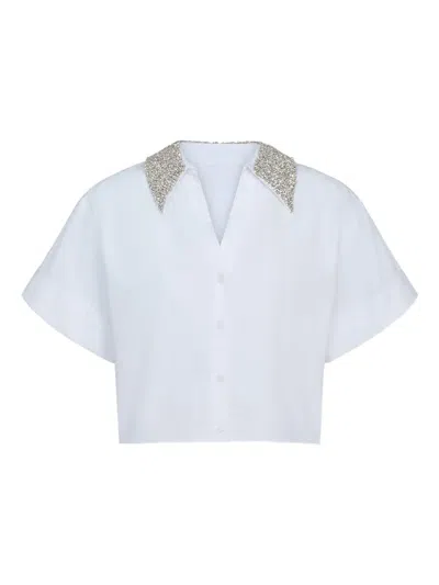 Soon To Be Ex Crystal Collar Crop Button-up Shirt In White