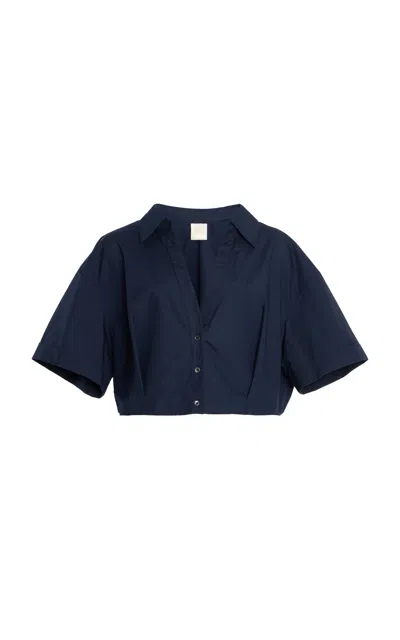 Next Ex Crop Cotton Button-up Shirt In Blue