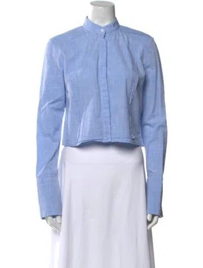 Pre-owned Long Sleeve Button-up Top In Blue