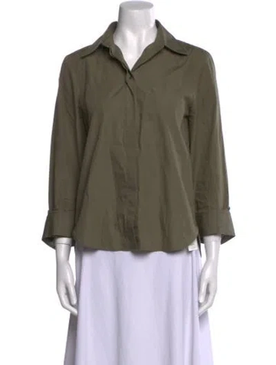 Pre-owned Three-quarter Sleeve Button-up Top In Green