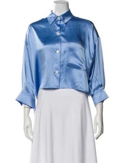 Pre-owned Silk Long Sleeve Button-up Top W/ Tags In Blue