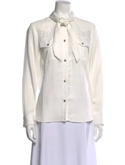 Pre-owned Tie Neck Long Sleeve Blouse In Neutral