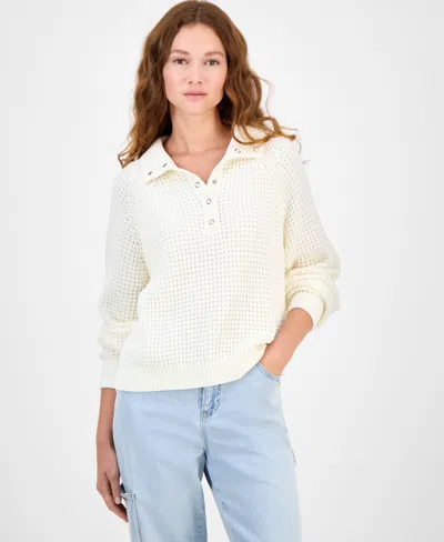 Juniors' Pointelle Sweater Hoodie In White