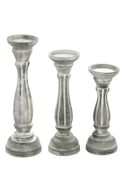 Set Of 3 Melting Wax Pillar Candleholders In Silver