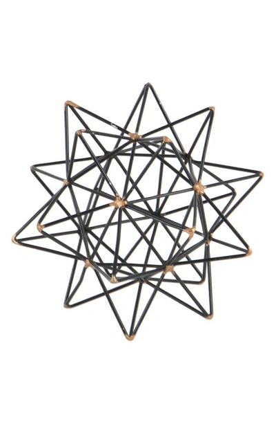Black Metal Geometric Sculpture With Gold Accents