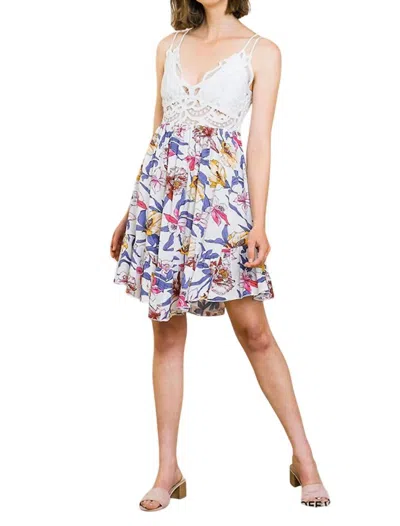 Floral Bell Sleeve Dress In Navy Mix In Multi