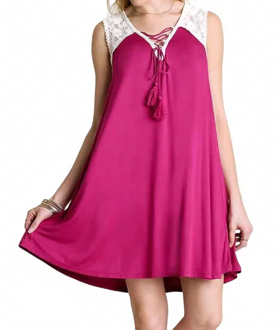 Open Shoulder Ruffle Sleeve Dress In Hot Pink