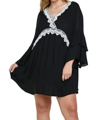 Crochet Ruffle Short Sleeves Top (plus) In Black