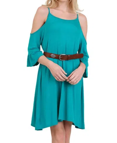 Open Shoulder Ruffle Sleeve Dress In Jade In Blue