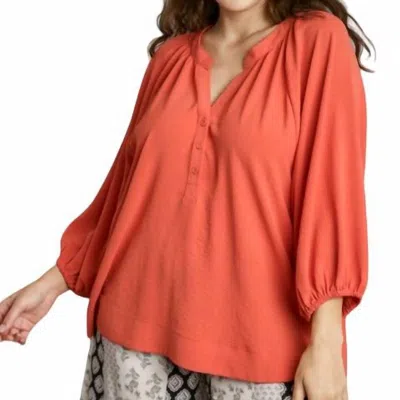 Raglan Sleeve High Low Hem Blouse In Orange