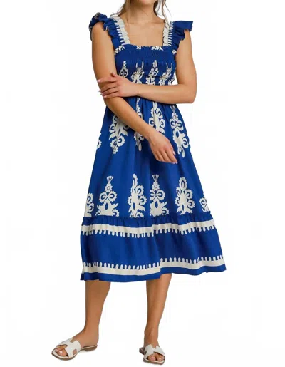 Border Print A-line Sundress With Ruffle Straps In Cobalt Blue