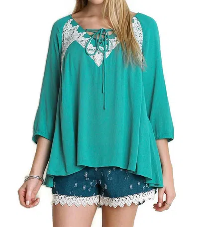 Medallion Ruffled Bell Sleeve Top In Natural In Brown