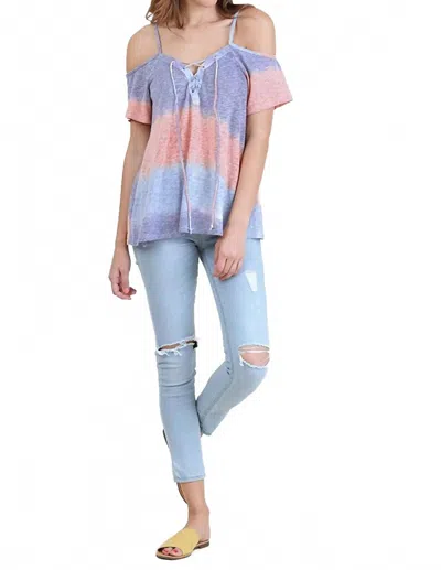 Lace Up Cold Shoulder Color Block Top In Purple Mix In Multi