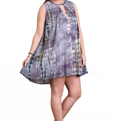 Tie Dye Sleeveless Keyhole Dress - Plus In Grey In Multi