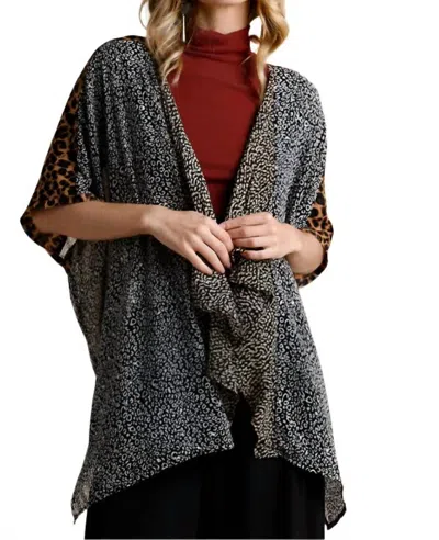 Kids' Animal Print Drape Kimono - Plus In Black In Gray