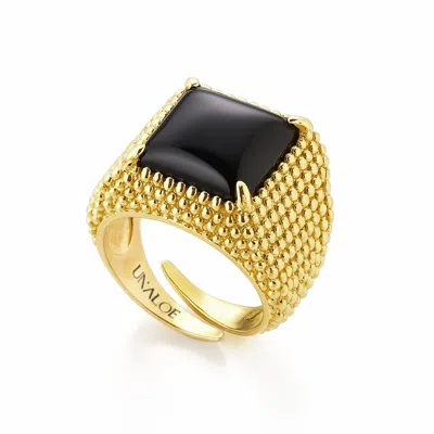 Men's Black / Gold Unisex Sterling Silver-gold Plated Shield Ring With Luminous Black Onyx In Multi