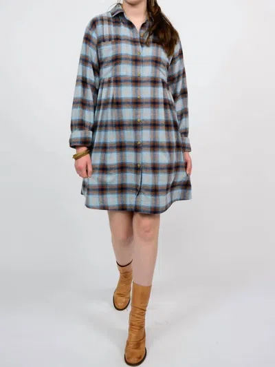 Tucked And Plaid Shirt Dress In Blue