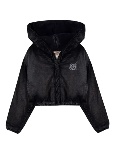 X Garcias Santa Unión Velvet Cropped Jacket In Blue