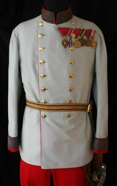 Pre-owned General Staff Officer White Military Tunic Men's Coat And Pant In White And Red