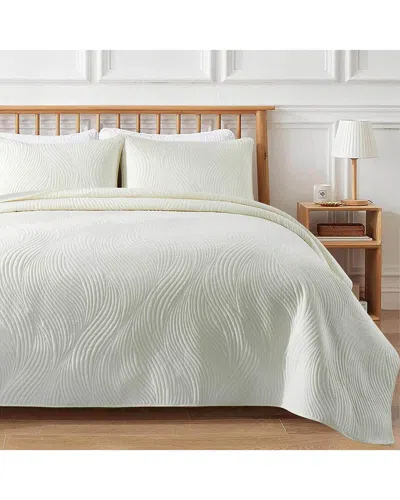 Quilted Reversible Coverlet Set In Ivory