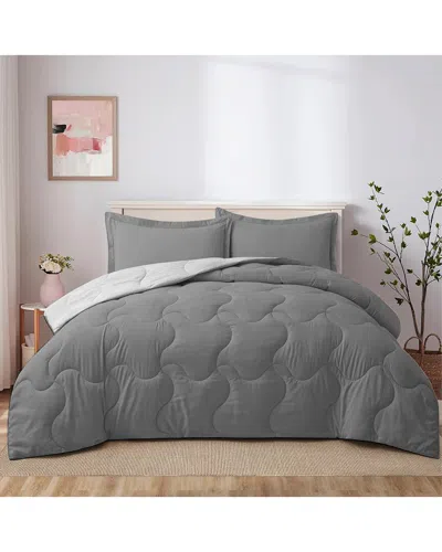 Reversible Lightweight Quilted Comforter Set In Gray