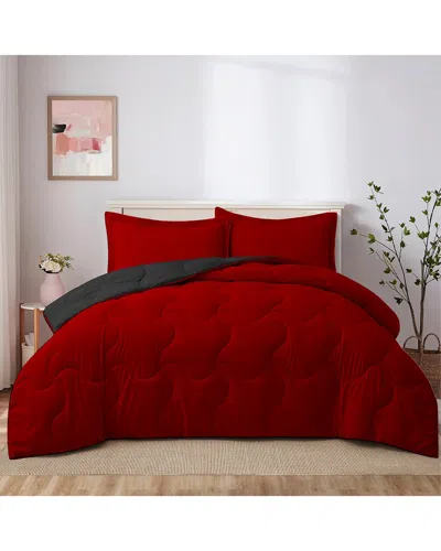 Reversible Lightweight Quilted Down Alternative Comforter Set In Red