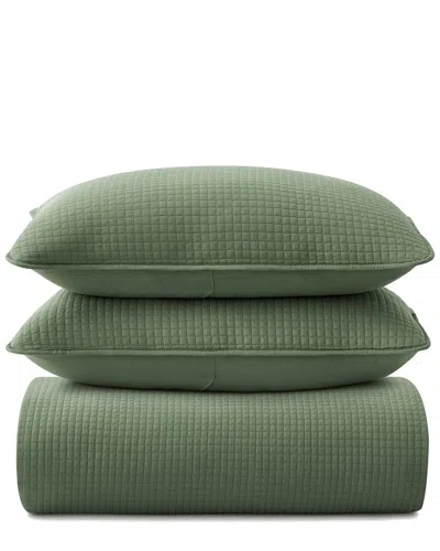 Reversible Quilted Coverlet Set In Green