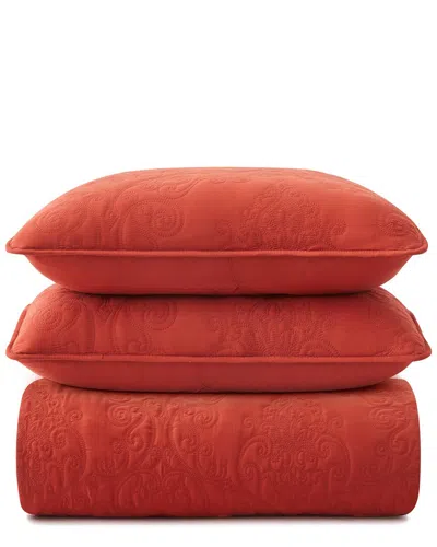 Reversible Quilted Coverlet Set In Red