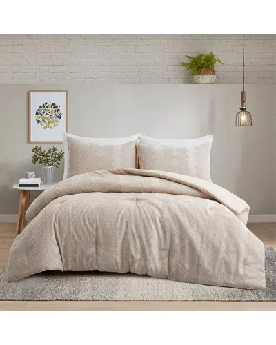 3pc Soft Solid Clipped Wave Quilted Duvet Cover Set In Brown