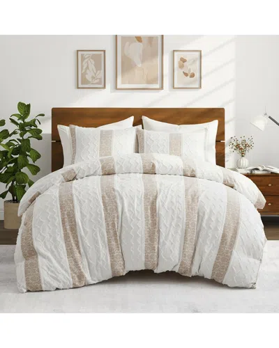 Textured Stripe Geometric Stylish Duvet Cover Set In Neutral