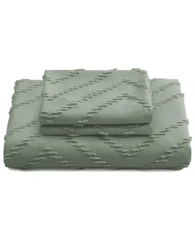 Soft Solid Clipped Jacquard Duvet Cover Set In Green
