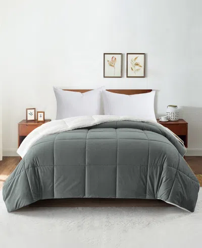 Sherpa Reversible Comforter, Queen In Dark Gray