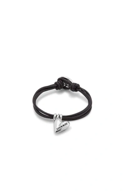 Leather Bracelet With A Sterling Silver-plated Heart Charm In Black
