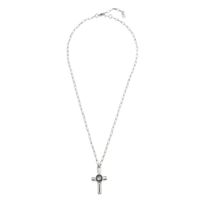 Sterling Silver Metal Alloy Necklace With Central Rectangular Link With Topaz And Medium Size Links In Metallic