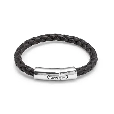 Sterling Silver Leather Braided Metal Bracelet In Black