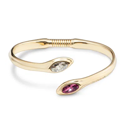18k Gold-plated Metal Alloy Ring With Large Oval Box And Pink Crystal
