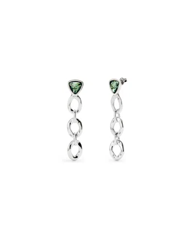 Silver Plated Dazzling Green Crystal Drop Earrings In Metallic