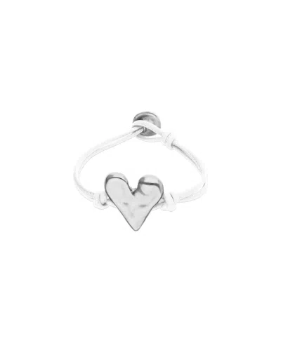 White Leather Bracelet With Heart Shaped Sterling Silver Plated Detail
