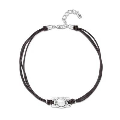 Sterling Silver Leather Strap Rectangular Bead Bracelet In Black