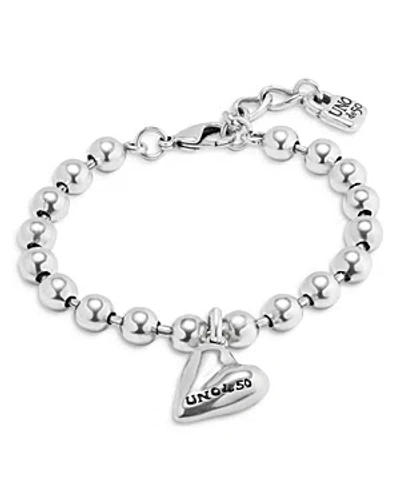 Cupido Heart Charm Bead Link Bracelet In Silver