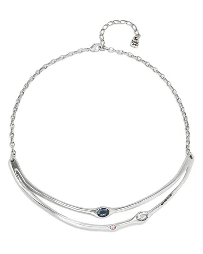 Anima White Zirconia Double Chain Ridged Collar Necklace, 13.4-15.75 In Silver
