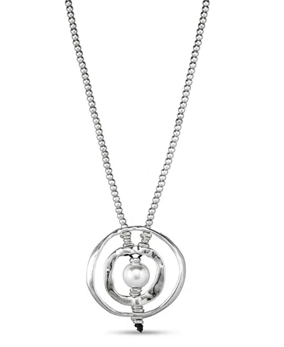 Sterling Silver-plated White Cultivated Pearls Bracelet In Black