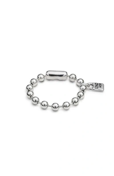 Small Beaded Bracelet Of Metal Alloy Plated Sterling Silver With Interlocked Carabiner Detail